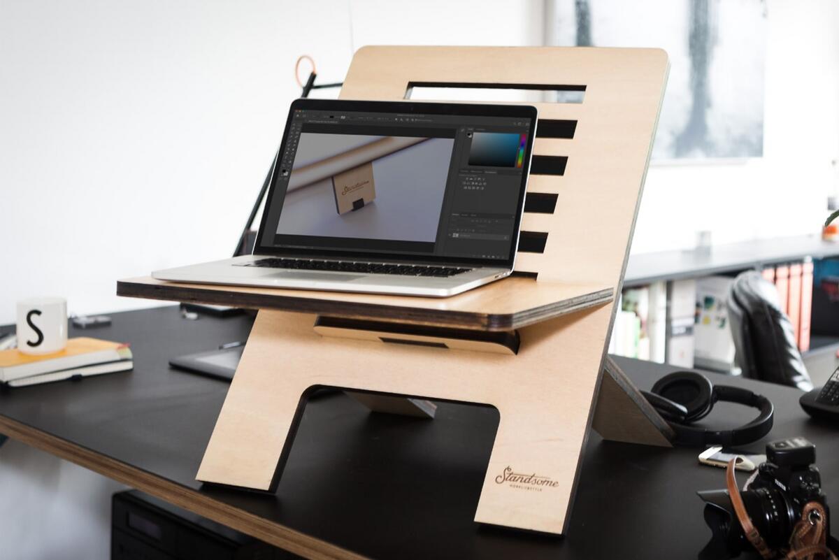 Schreibtischaufsätze & Stehschreibtische (5 Produkte) Ein Schreibtischaufsatz, auch Stehschreibtisch-Aufsatz genannt, kann deinen Arbeitsplatz revolutionieren, indem er dir ermöglicht, zwischen Sitzen und Stehen zu wechseln und so deinen Rücken zu schonen Eine richtig konzipierte Ständerkonstruktion gewährleistet höchsten Nutzungskomfort unter Berücksichtigung der Stehhaltung bei der Arbeit, was sich positiv auf die Gesundheit auswirkt. Dank seiner universellen Struktur und seines modernen Designs ist der Laptopständer eine funktionale Ergänzung in jedem Raum Um einen fertigen Arbeitsplatz zu erhalten, reicht es aus, zwei Bretter in die Ausschnitte zu legen. Das ästhetische Erscheinungsbild des Ganzen macht den Ständer nicht nur zu einem funktionalen Arbeitsplatz, sondern auch zu einem modernen Accessoire, das das Interieur jedes Raums abwechslungsreich gestaltet. Produktbeschreibungen Stehschreibtisch ist die perfekte Lösung für Menschen, die viel Zeit vor dem Bildschirm verbringen, sowohl bei der Arbeit als auch zu Hause. Das raffinierte Finish und die gefrästen Kanten des Ständers sorgen für eine komfortable Nutzung des Produkts und ein ästhetisches Erscheinungsbild des Ganzen. Höhenverstellbarer Schreibtischaufsatz Mit Tastatur Stehschreibtisch Aufsatz | Stehpulte | Stehpult Holz | Laptopständer | Ständer | Stehtisch Aufsatz | Rednerpult | Schreibtischaufsatz | Stehpult Höhenverstellbar | Made In EU Für Schreibtisch Elektrisch Laptopständer, Holzarbeitsplatz, Home-Office, moderner Schreibtisch, verstellbarer Schreibtischständer, Sitz-Steh-Schreibtisch Das optimale Gewicht des Produkts beträgt 4 kg, es gewährleistet eine sichere Verwendung des Ständers und Stabilität der Struktur während des Betriebs. Der Steh Schreibtisch ist einfach zu installieren. Das Standsome Stehschreibtisch -Aufsatz ist einfach zu montieren und hat Abmessungen von 450 x 580 x 510 mm. Die Materialien, aus denen der Stehschreibtisch-Aufsatz hergestellt ist, sollten ebenfalls berücksichtigt werden. Holz, Kunststoff und Metall sind die gängigsten Materialien, aus denen Stehschreibtisch-Aufsätze hergestellt werden Warnhinweise Überschreiten Sie nicht die maximale Gewichtsgrenze von 4 kg und schützen Sie das Holz vor direkter Sonneneinstrahlung, extremen Temperaturen und Feuchtigkeit, um eine sichere und ordnungsgemäße Verwendung zu gewährleisten.